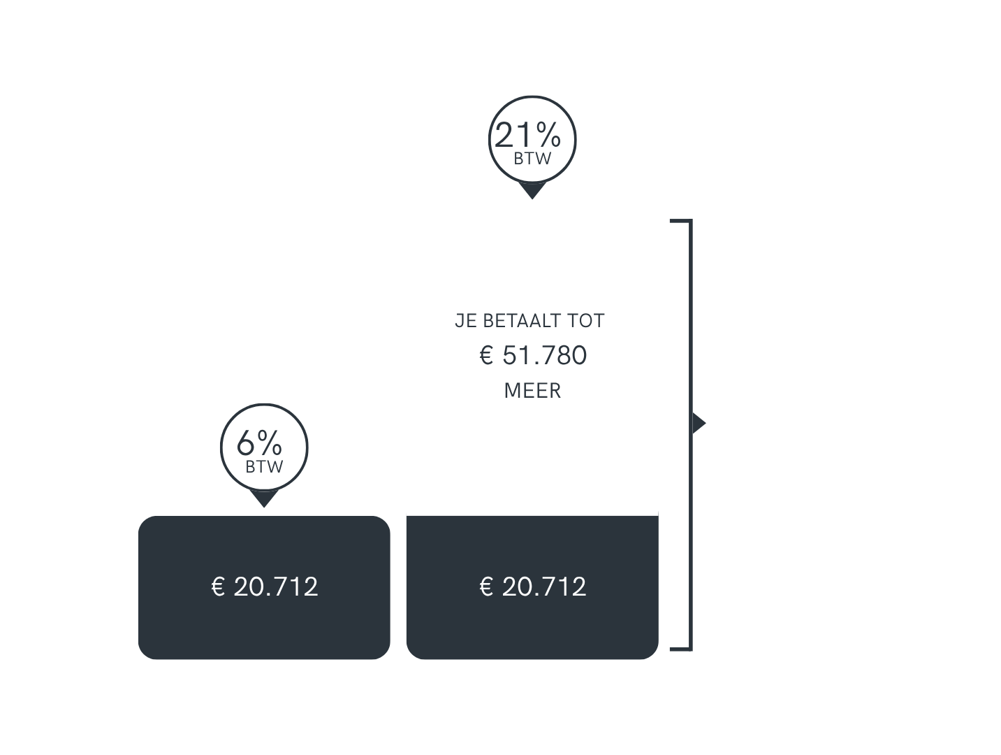 Wat er níet naar btw gaat, kan rechtstreeks naar wat jij belangrijk vindt: afwerking, comfort, en marge. De berekening hiernaast toont wat een concreet en voelbaar verschil dit brengt voor jouw aankoop.
